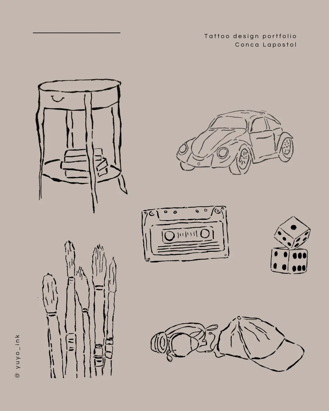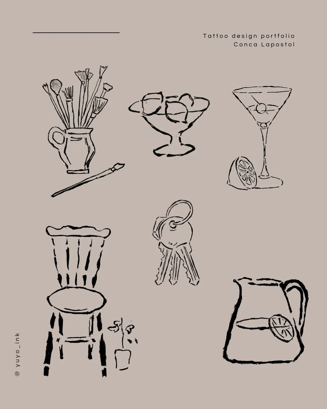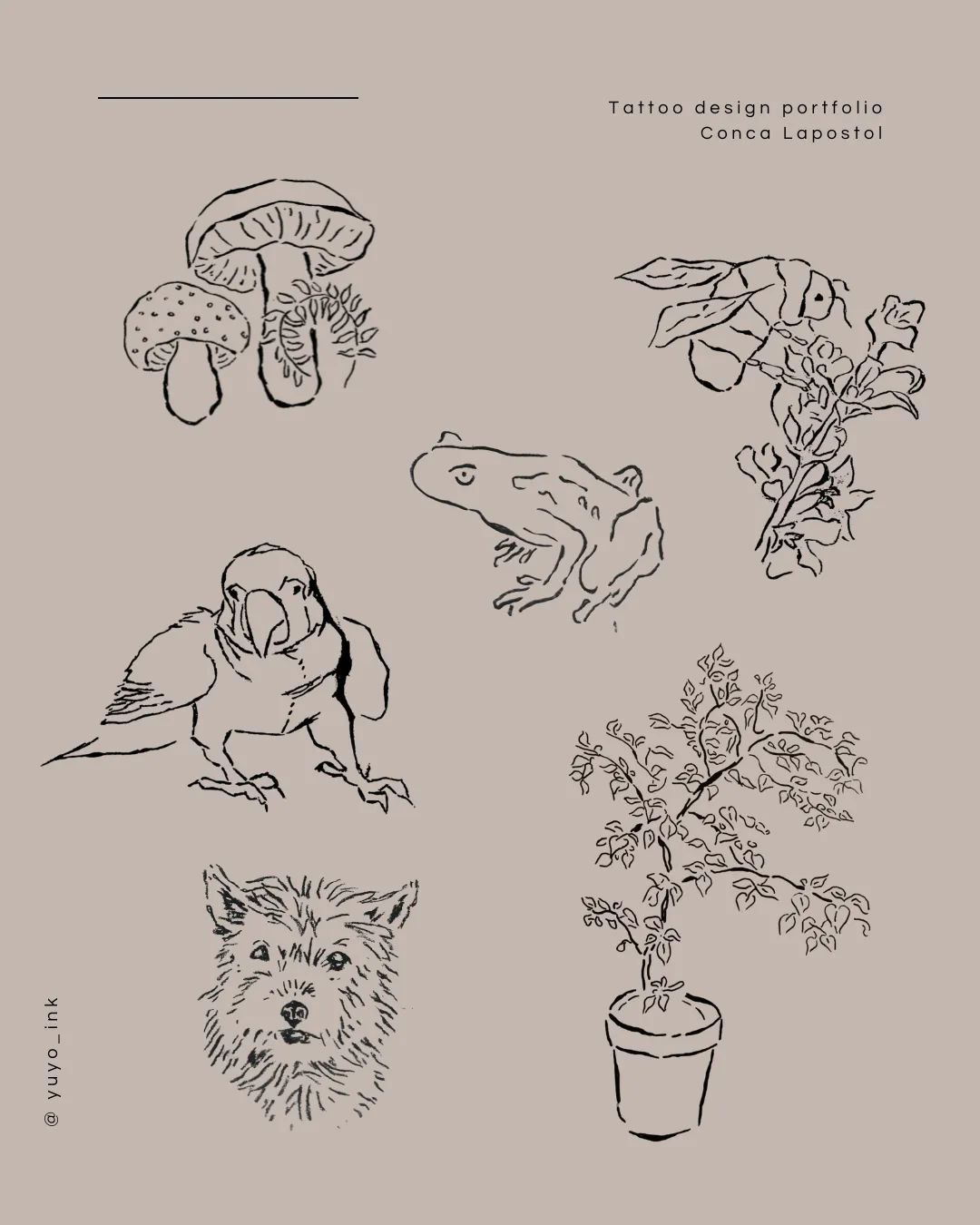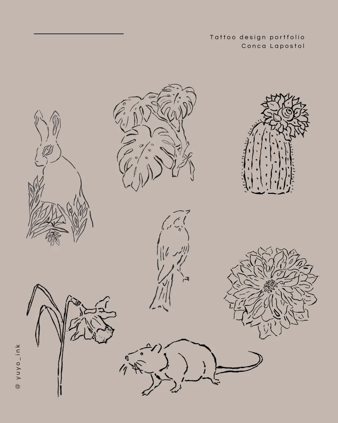 My name is Conca, creator of @yuyo_ink. I specialize in black tattoo designs inspired by nature, animals, and everyday objects from both the present and the past.